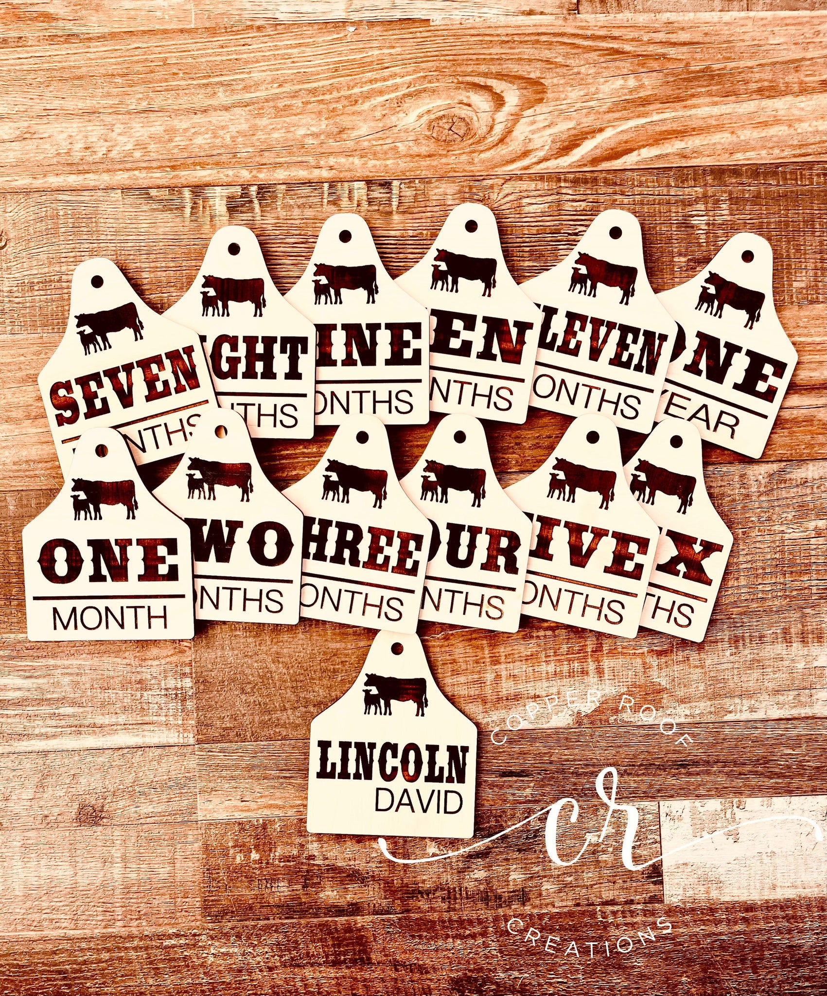Custom Engraved Baby Milestone Tags Cow Eartag Milestones Baby Milestone Props